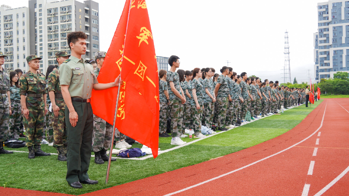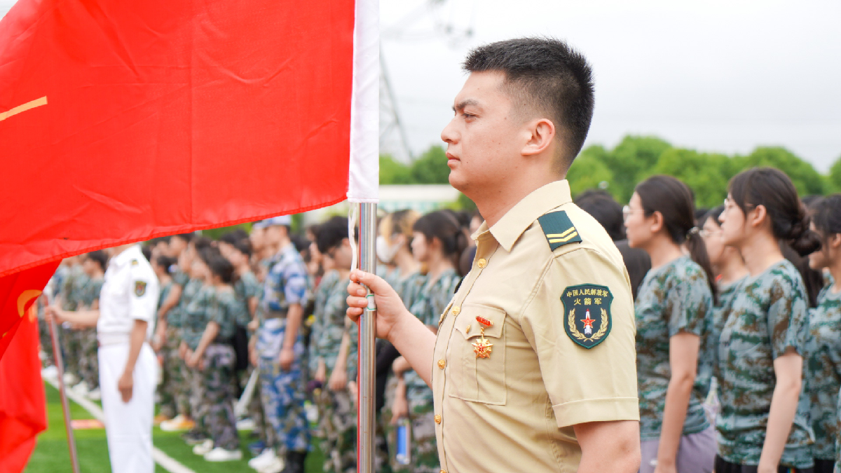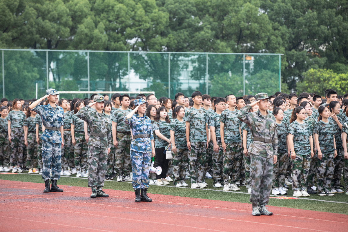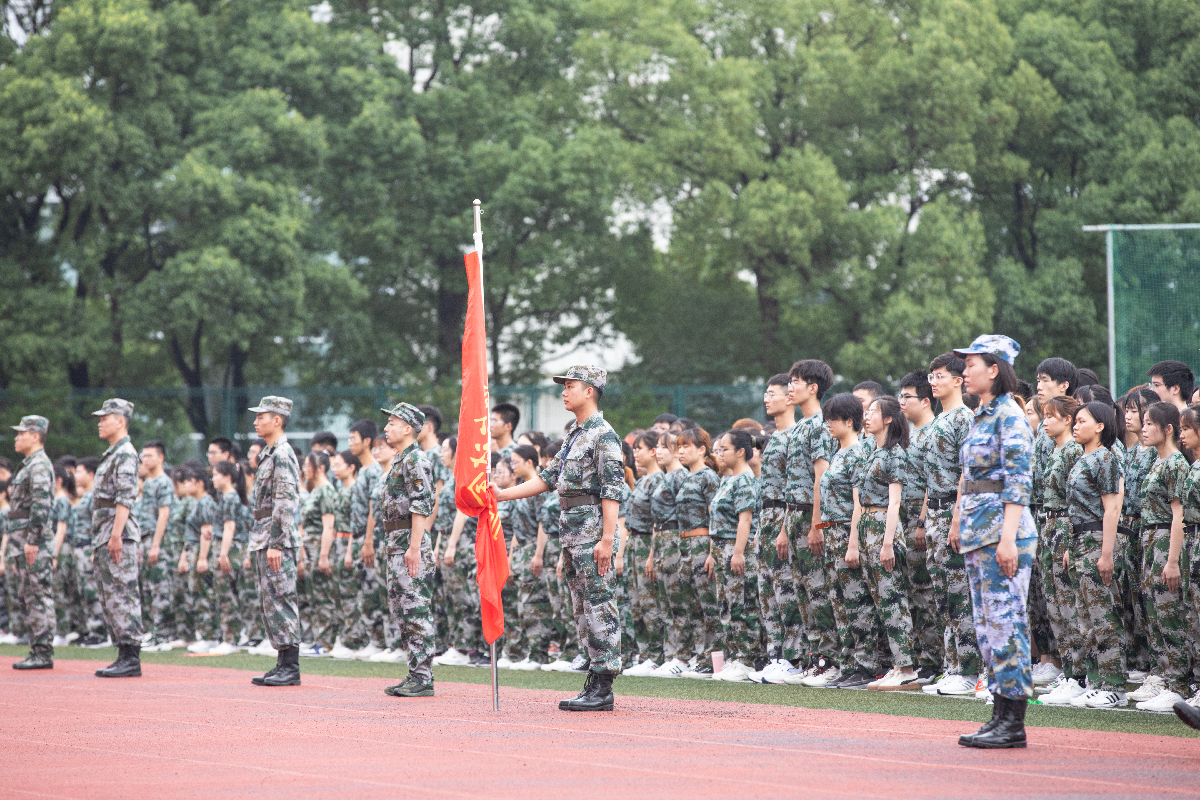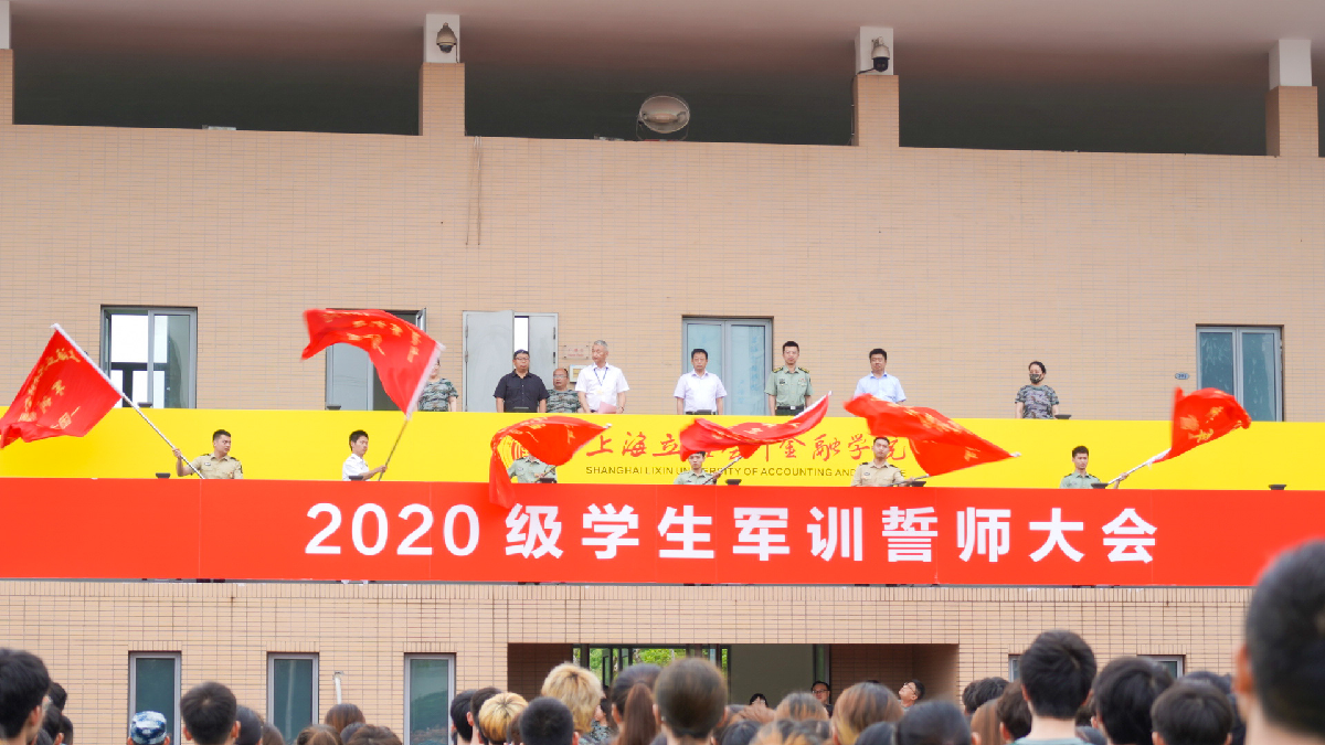 大会上,主席台领导向军训教官代表授旗。会计学院学生代表郭宏宇和金融学院学生代表傅骁发言。4000余名2020级学生在简短而隆重的仪式后展开为期12天的军训之旅。