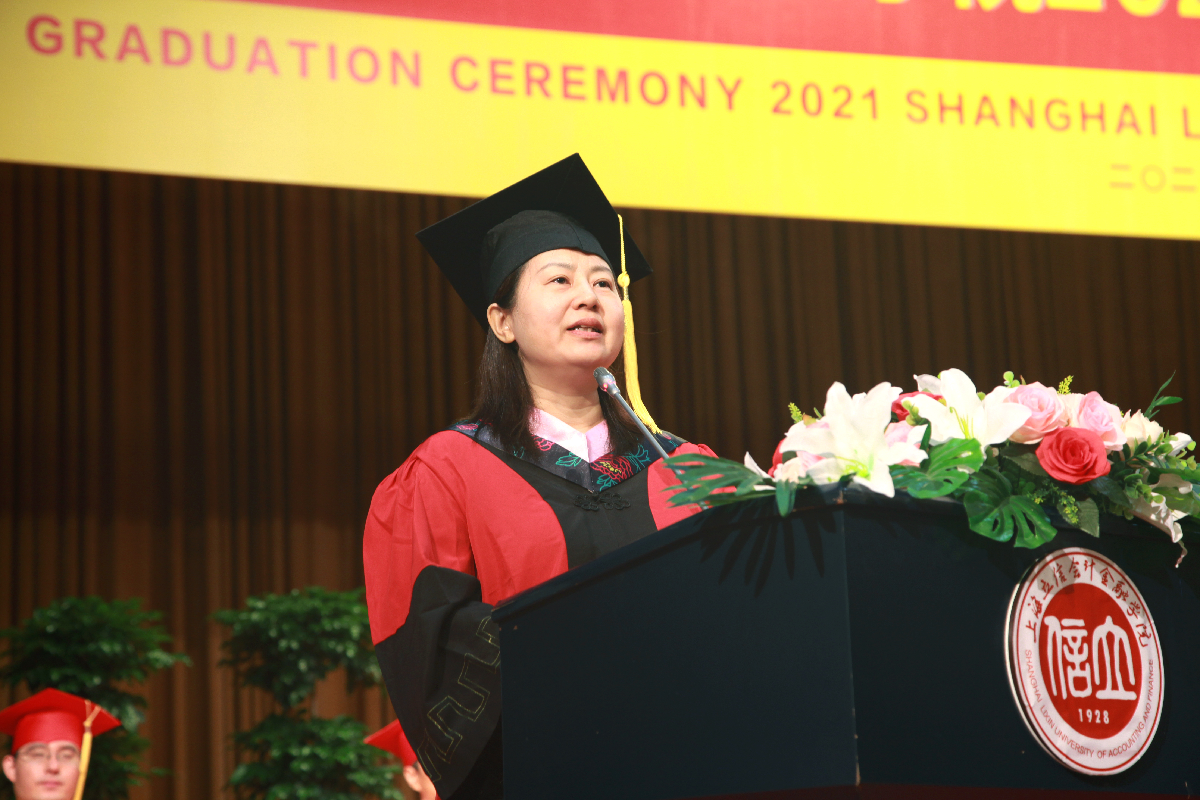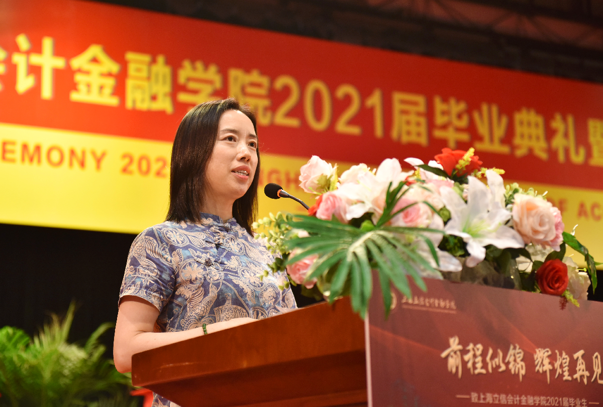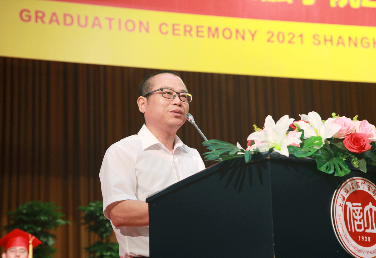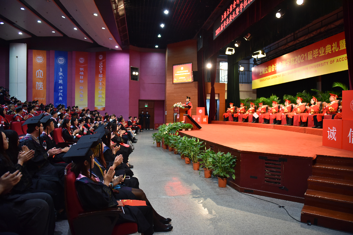 离别之际,杨力代表学校向广大毕业生致以热烈的祝贺,对辛勤付出的老师和家长表达了衷心的感谢和由衷的敬意。杨力与毕业生们分享了三则立信校友的故事,以重温“财经战线红管家”李建模校友铁肩担道义、热血保家国的爱国情怀,鼓励同学们赓续立信文脉,传承红色基因,在实现中国梦的伟大实践中创造自己的精彩人生;以重温“熔铸在大西北建设中的螺丝钉”蒋娟芬校友默默坚守、不计得失的奉献精神,叮嘱同学们在面对国家和民族利益、面对社会责任和价值选择时,要始终坚守良知,不忘初心;以重温“中国现代会计之父”、我校创校校长潘序伦先生敢为天下先的创新精神,寄语同学们能够胸怀大局,敢为人先,热切拥抱已经到来的新时代,使自己过得更好,让国家变得更强。最后,杨力深情嘱托立信新校友们,要将爱国情怀、奉献精神、创新意识以及诚信品格,一并打包放入行囊,守护好母校给予大家的宝贵财富。牢记新时代赋予立信学子的新使命,在党的领导下前赴后继,继续谱写伟大的“青春之歌”!