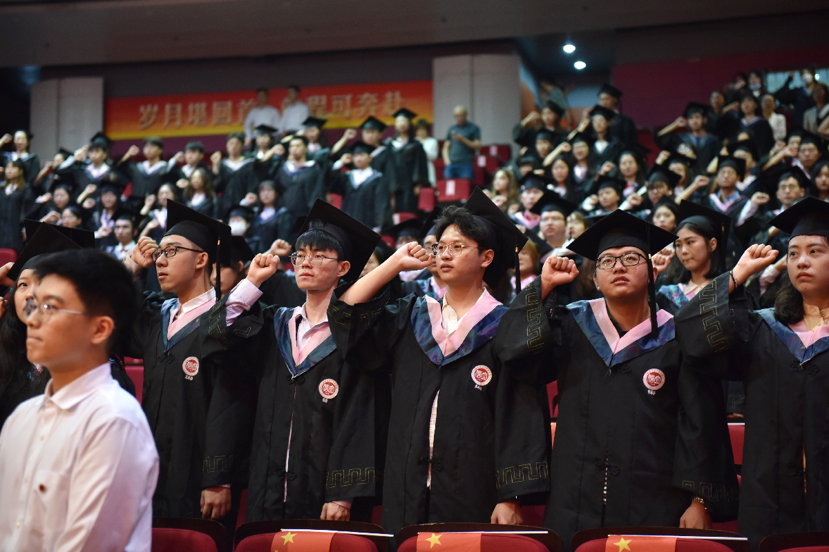 即将离别母校之际,毕业生再度进行诚信宣誓,激情澎湃地唱响校歌,毕业典礼在庄重的校歌声中结束。接下来,各学院将分别举行毕业典礼,隆重欢送毕业学子,祝福全体2021届毕业生前程似锦、未来可期!
