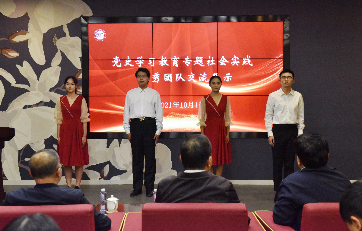 座谈会后,巡回指导组一行还参观了党史学习教育专题社会实践成果展示、党史学习教育专题社会实践优秀团队交流和党史学习教育主题朗诵等展示活动。