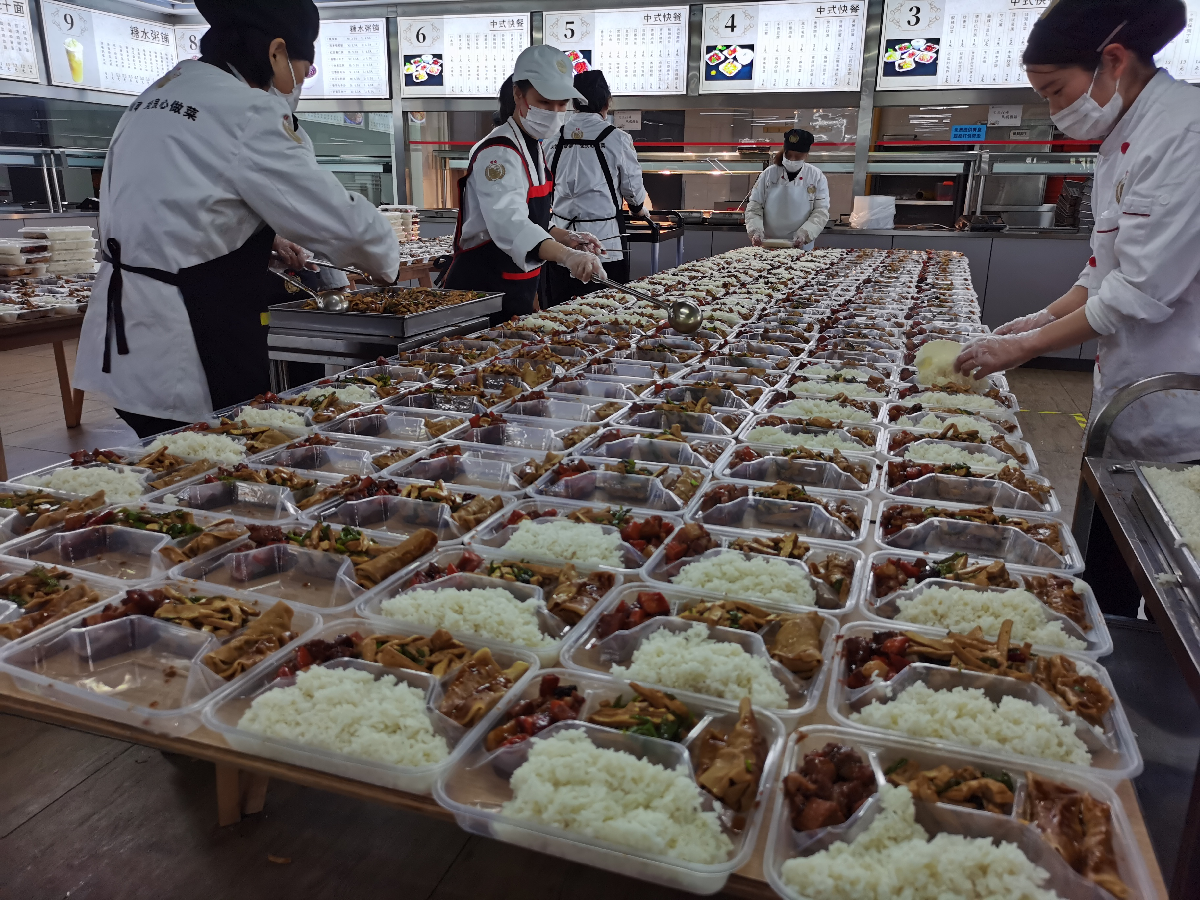 疫情严重,学生就餐如何保障?为了斩断病毒通过外卖输入的可能性,同时让学生吃得放心,提供更加便利的餐食,总务处膳食管理科同志积极调配学校餐饮工作人员,在同心抗疫的大背景下,努力克服人手缺乏的困难,调整工作方法,按时按点将三餐送至各宿舍。