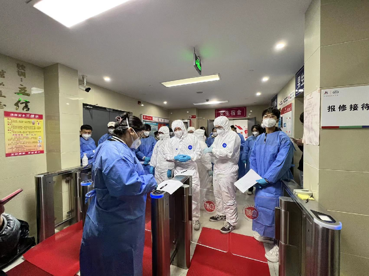 学校封闭管理以来,卫生管理科科长王婕一直驻守学校,她带领卫生科同志深入校内封控区为学生建立档案、指导卫生防疫各项工作,防护服一穿就是几个小时、满身是汗,因为长时间戴手套,双手被捂得发白又皱皱巴巴。“只要确保学校的每一位师生健康安全,我们苦一点累一点不要紧。”王婕老师朴实的话语透出一名共产党员的坚定与担当。