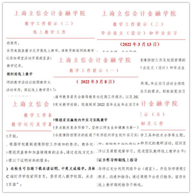 快速响应,根据疫情形势迅速将线下教学无缝转换为线上教学,连续发布5期教学工作提示,对线上教学、基层教学组织的线上教研活动、毕业论文(设计)和毕业实习、教学运行及学籍管理、教师辅导与答疑、全程导师指导等工作进行全面部署和安排,确保2022年春季学期线上教学和日常教学工作平稳有序。
