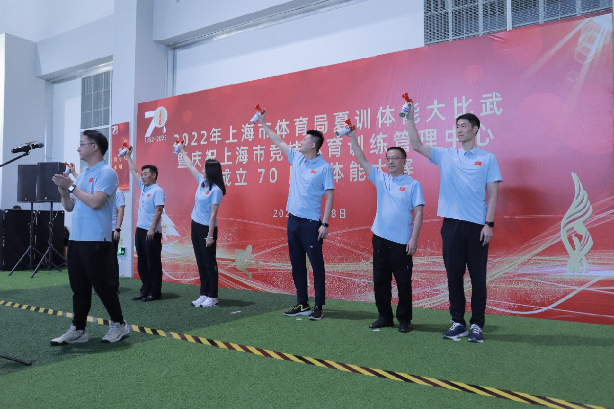 战酷暑,强体能,7月28日,2022年上海市体育局夏训体能大比武在崇明体育训练基地进行。上海市副市长陈群赴基地看望慰问参加大比武的运动员、教练员。市体育局党组书记、局长徐彬,党组副书记、副局长陆檩,副局长罗文桦,市竞技体育训练管理中心党委书记王海威,市竞技体育训练管理中心主任王励勤出席活动并为运动员颁奖。党委常委、副院长赵荣善受邀出席活动。