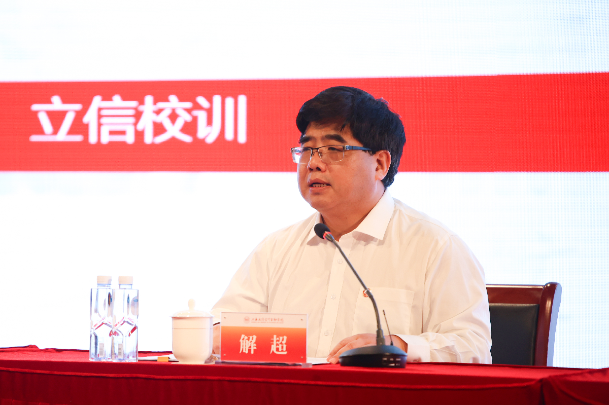解超首先对2022级新生的到来表示欢迎和祝贺,对辛勤培育新生的家长和老师致以敬意。为引导新生知校史、明校情、立大志、勇担当,解超以校史为脉、诚信为魂讲述了学校94年风雨兼程、砥砺前行的壮阔历程。同时,带着勉励与期许,解超对全体2022级新生提出了殷切希望。一是希望同学们树立远大理想,书写青春华章。新时代的中国青年,生逢其时、重任在肩,施展才干的舞台无比广阔,实现梦想的前景无比光明。在错综复杂的国际国内形势下,希望同学们怀有大格局、大境界、大智慧,让个人理想与国家发展同频共振,以中国人的志气、骨气、底气,为服务国家富强、民族复兴、人民幸福贡献青春力量。二是希望同学们传承立信文化,筑牢信念根基。立信文化的灵魂和精髓在于“诚信”二字,诚信是立信90余年办学历程中始终坚守的核心价值观。作为立信的新生代、新力量、新希望,希望同学们牢记“信以立志、信以守身、信以处事、信以待人、毋忘‘立信’、当必有成”,进一步传承“立信”文脉,用诚信文化凝心铸魂、聚力汇智。三是希望同学们坚持学业为重,努力追逐梦想。身处知识信息快速迭代发展的时代,希望同学们更要重视学习、学会学习、终身学习,把学习始终作为大学阶段的首要任务,打牢基础、勤于实践、精于专业,学会提问、学会思考,不断拓展知识的深度和广度,努力成为具有“诚信品质、实践能力、创新意识、国际视野”的高素质应用型人才。