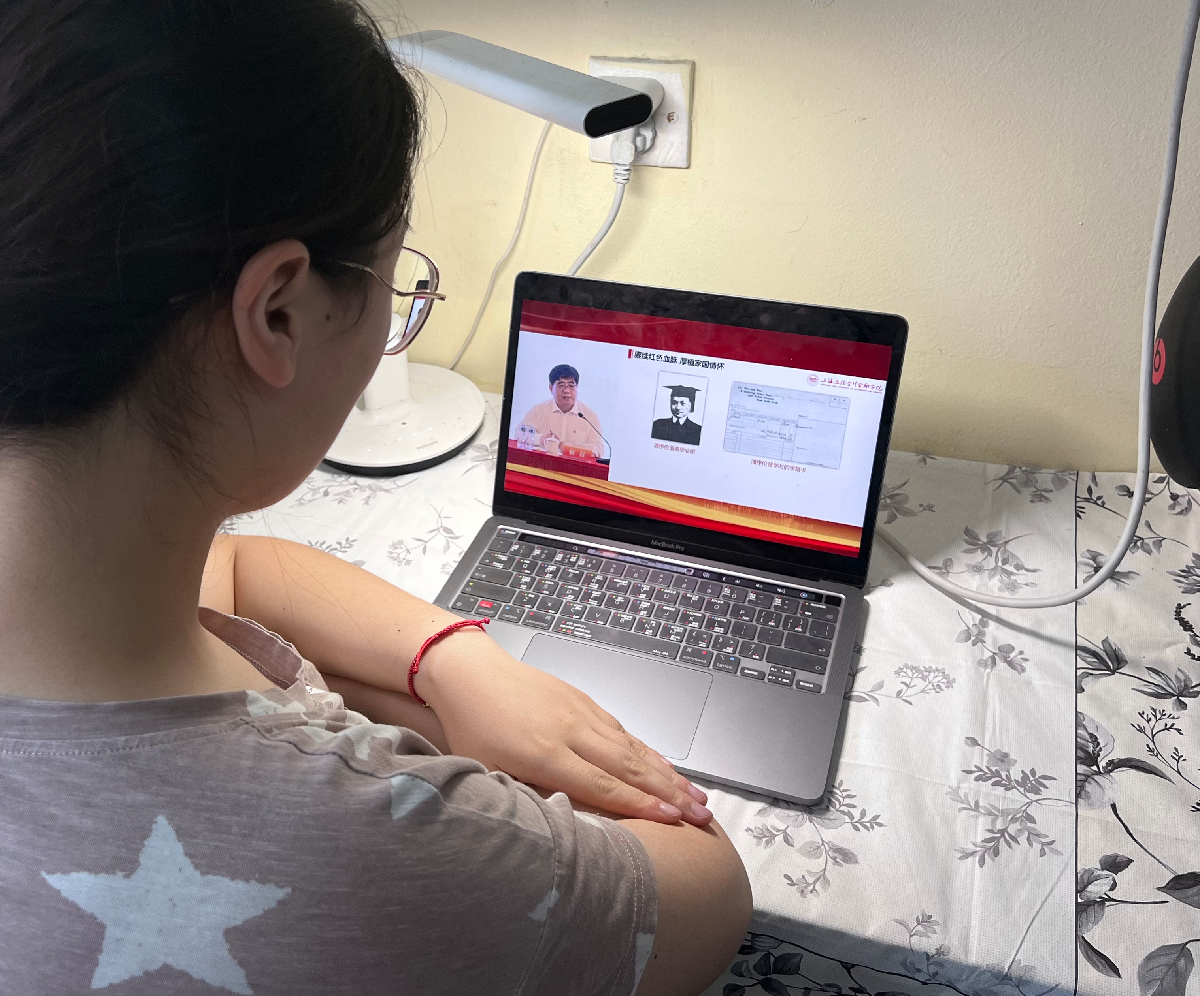 授课过程中,解超讲述了老一辈立信人的爱国奋斗故事,点赞了新时代立信青年勇挑重担、同心抗疫的大爱情怀。1936年,由上海各界救国联合会主办的立信音乐训练班成立。吕骥、冼星海、麦新等人担任教师,培养了一大批抗日救亡音乐专才。谈到校友麦新时,他创作的《大刀进行曲》响彻会场,现场同学的爱国之情被瞬间点燃。在今年上半年的校园疫情保卫战中,立信学子挺身而出、迎难而上,奋战在校园抗疫的各个角落,用实际行动彰显立信青年的使命担当。立信学子的原创rap《春暖花开,老地方见》在现场播放,看着视频中闪现的立信师生疫情期间携手并进、共克时艰的动人场景,全场报以热烈的掌声。