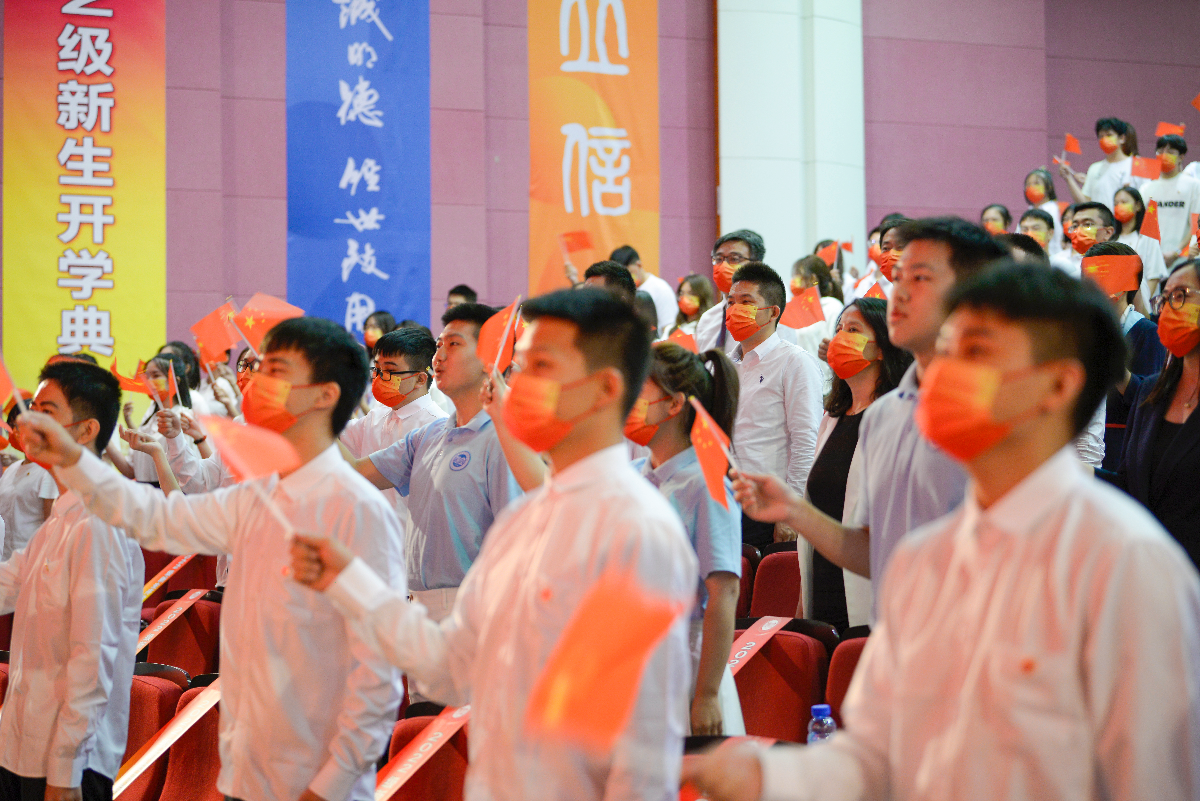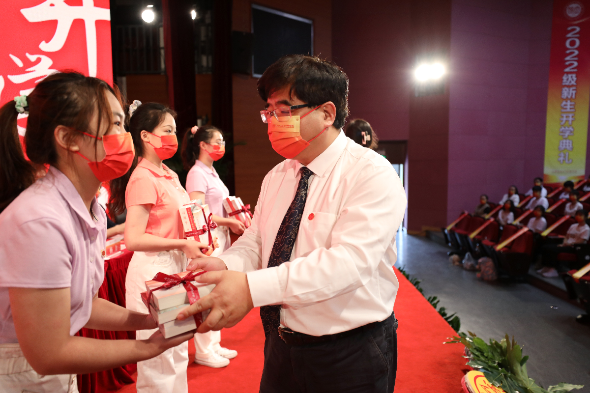 典礼以奏唱《中华人民共和国国歌》拉开序幕。典礼上,校党委书记解超为2022级新生代表赠送《习近平谈治国理政》第四卷、《中国共产党简史》《习近平与大学生朋友们》等书籍,希望同学们牢记领袖嘱托、汲取党史奋进力量。