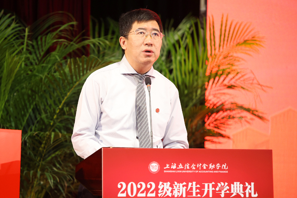 党委副书记、院长杨力从“立心、求知、向真”三个维度向同学们提出三点期望,他指出:第一,在充满不确定性的时代,应知如何立心。要重视信念与价值的力量,越是面对不确定性,越要坚守好信念理想,要继承立信优良传统,将“小我”融入“大我”,实现人生更好的成长。第二,在加速发展的数字化时代,应知如何求知。面对新一轮的科技革命和产业变革,在知识获取方式、教育方法、教学手段等诸多方面都发生着巨大而深刻变化的态势下,要顺应时代变化,不断汲取思想与知识的养分,刻苦求知、追求卓越。第三,在易入“信息茧房”的时代,应知如何向真。随着信息技术的不断迭代更新,在时时刻刻被海量信息包围下,要多读书、读好书,勤动脑、善思考,努力学习马克思主义立场观点方法,提高人文素养,砥砺道德品质,永远求真向真。杨力还勉励生逢盛世的全体新生,胸怀家国,不负韶华,在转型的世界中坚守信念,在美丽的立信成长为更好的自己!