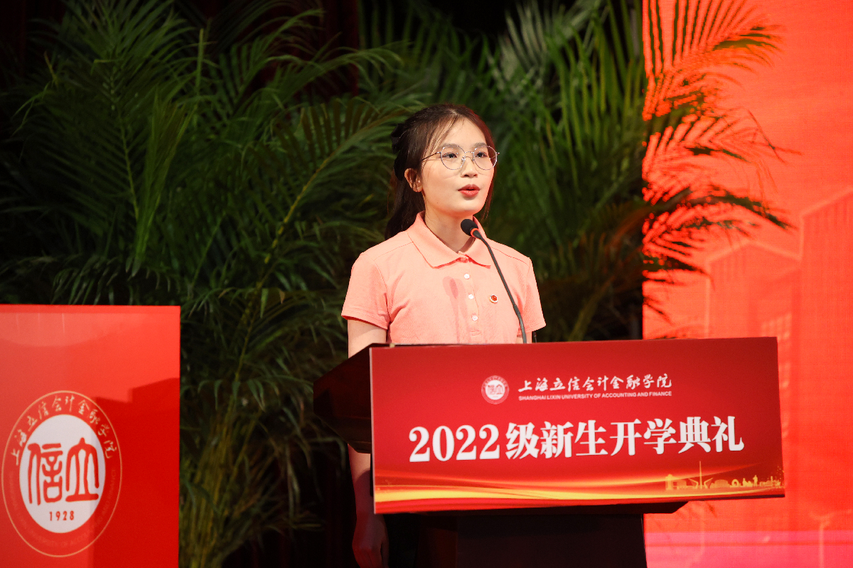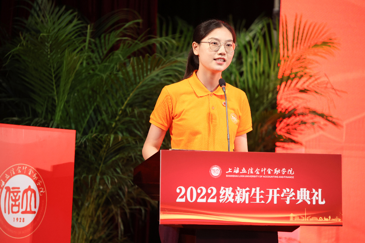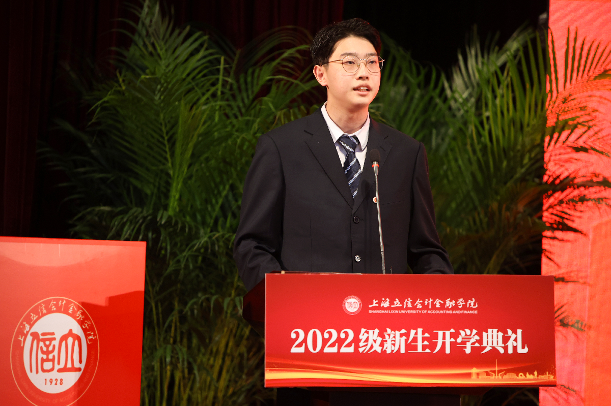2022级研究生代表徐立阳,本科生代表、信息管理学院周秋颜通过自己对“立信”内核的独到理解,号召全体新生谨记潘序伦老校长的教诲,严于律己、谨守初心。