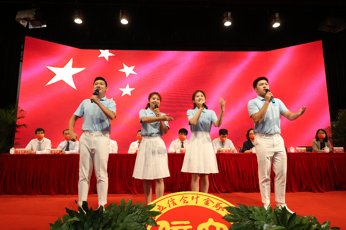 为迎接党的二十大胜利召开,新生代表慷慨献礼,激昂演绎朗诵《把青春播撒在民族复兴的征程上》,并带领全体立信新人共同发出“请党放心、强国有我”的铮铮誓言:“惟愿立信同学,用青春守护盛世中华,用热血浇洒祖国大地,用奋斗书写时代华章!”