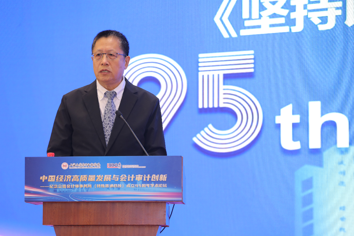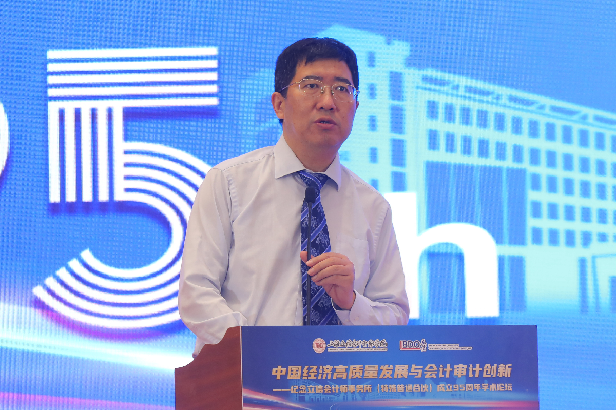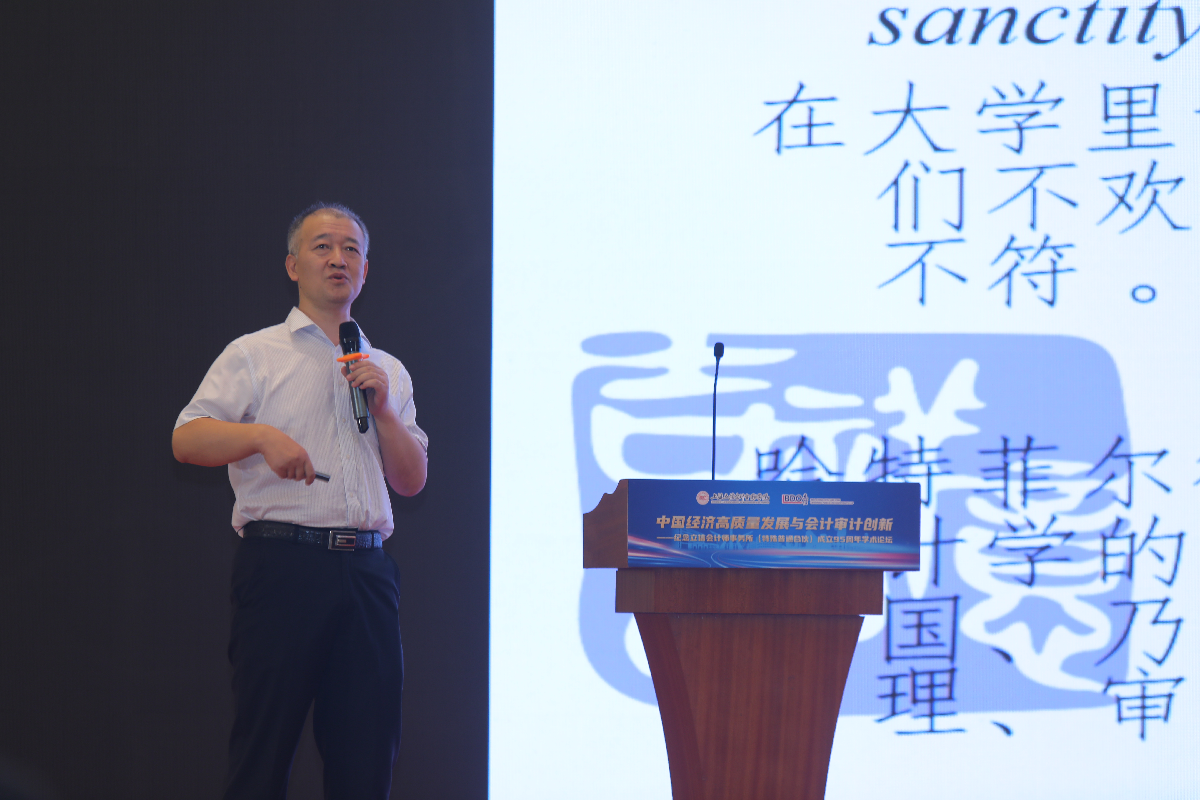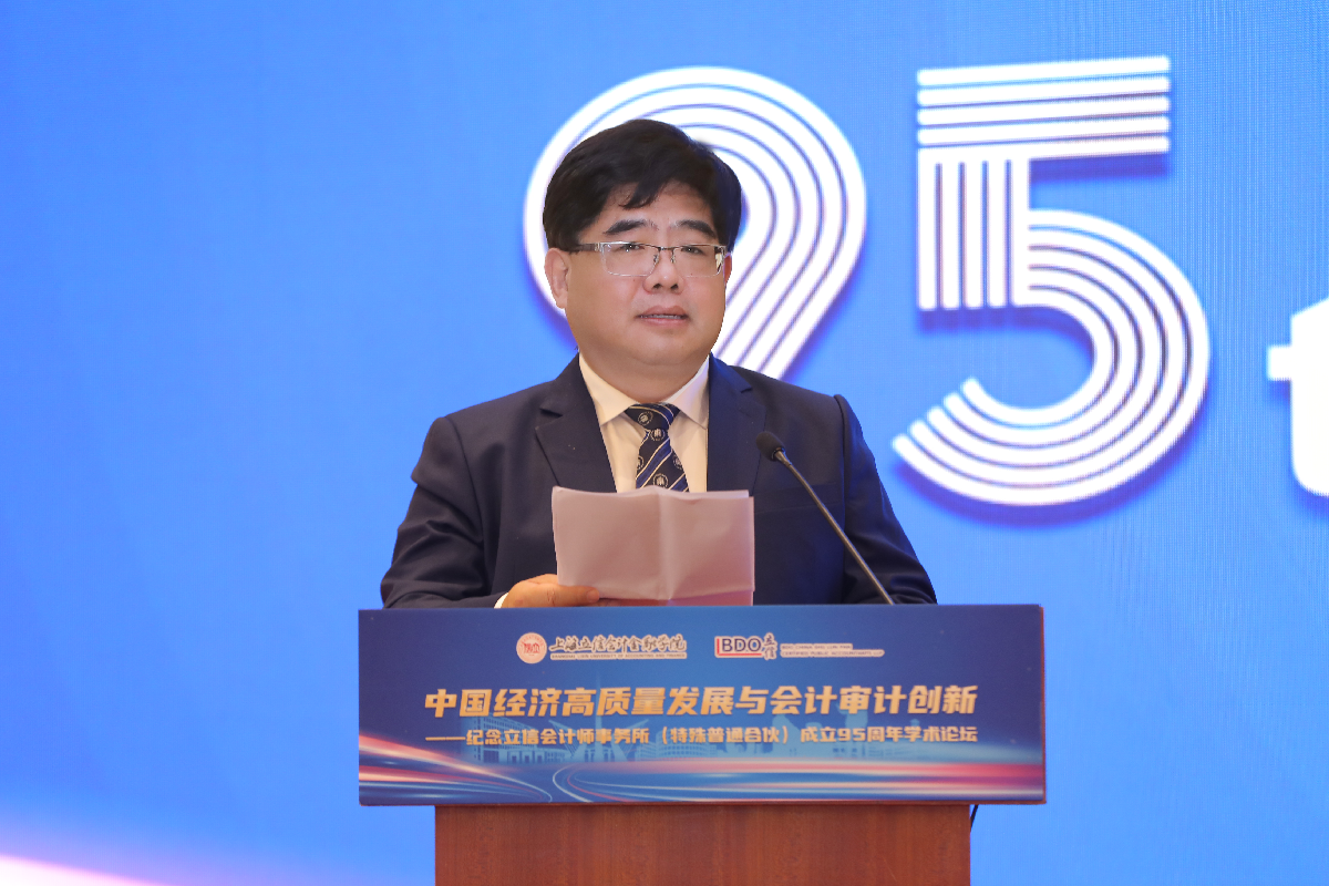 周汉民在致辞中表示,今年是潘序伦先生创立的立信会计师事务所成立95周年,潘序伦先生先后创办立信会计师事务所、立信会计专科学校和立信会计图书用品社,开辟了“三位一体”的会计事业发展先河。此刻以举办高端研讨会的形式进行纪念,学习传承弘扬先贤精神,意义重大。当下世界正处于百年未有之大变局,中国经济持续快速发展,面对机遇与挑战,希望论坛汇聚更多智慧和力量,为会计审计创新推动中国经济高质量发展提供更多思路和建议。他号召与会者向潘序伦先生等前辈先贤学习,努力沿着改革开放的道路坚定前行。