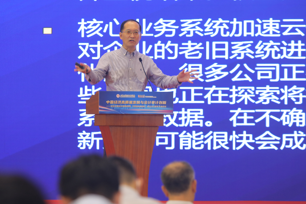 中国审计学会会长孙宝厚,中国注册会计师协会会长赵鸣骥,上海证券交易所党委委员、副总经理董国群分别聚焦“坚持以‘立信’为本推动会计审计及经济社会高质量发展”“推动注册会计师行业高质量发展”“提高资本市场会计信息质量”发表主旨演讲。