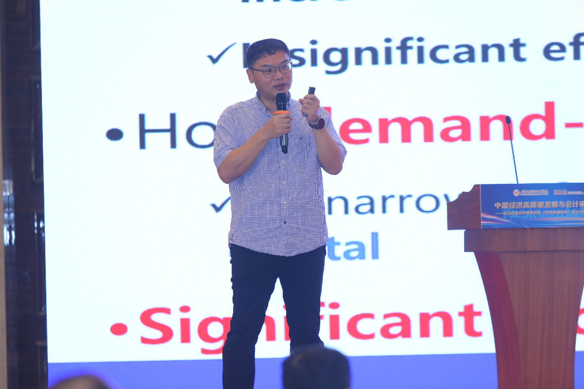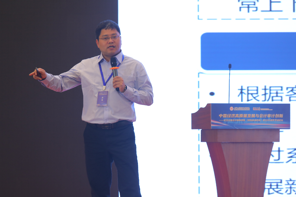 中国人民大学“杰出学者”特聘教授、财政部首批会计名家王化成,复旦大学管理学院副院长吕长江,上海财经大学会计学院院长靳庆鲁,厦门大学会计系主任杜兴强,中央财经大学学术期刊社社长袁淳,上海财经大学会计与财务研究院副院长何贤杰,浙江大学审计处常务副处长、财务与会计学系主任陈俊,我校会计学院院长李培功分别围绕“数智时代的财会教育”“数字化时代管理会计新模式”“企业数字化转型与注会人才培养”