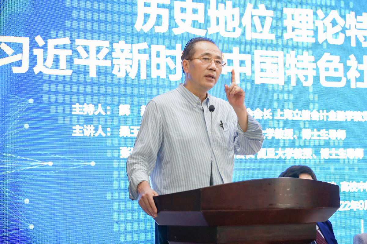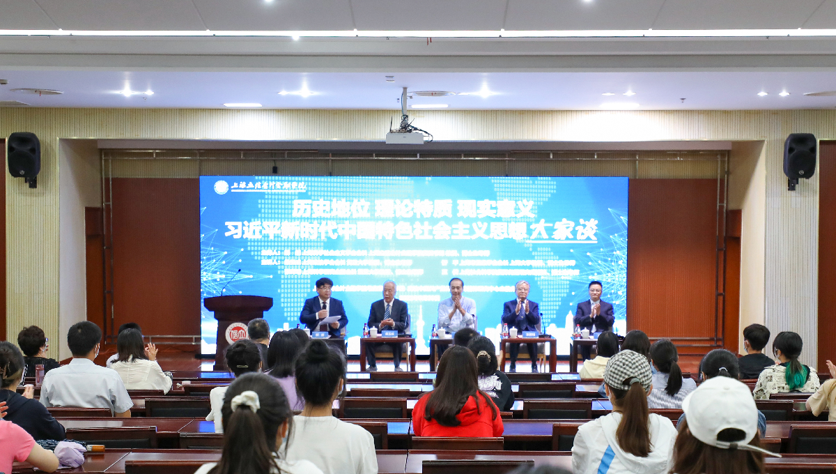 为深入贯彻落实习近平总书记关于“大思政课要善用之”的要求,充分发挥习近平新时代中国特色社会主义思想的铸魂育人功能,9月30日,马克思主义学院在上川路校区举行了“历史地位、理论特质、现实意义——习近平新时代中国特色社会主义思想‘大家谈’”活动。上海政治学会会长、复旦大学教授、博士生导师桑玉成,上海市党史学会会长、上海大学教授、博士生导师忻平,上海科学研究会副会长、复旦大学教授、博士生导师张晖明,上海社会科学院国际问题研究所所长、博士生导师王健联手同台,给师生们上了一堂内容丰富、思想深刻的思政大课。校党委书记、上海科学社会主义学会会长、高校伟大建党精神研究中心立信分中心主任、教授、博士生导师解超主持了座谈。