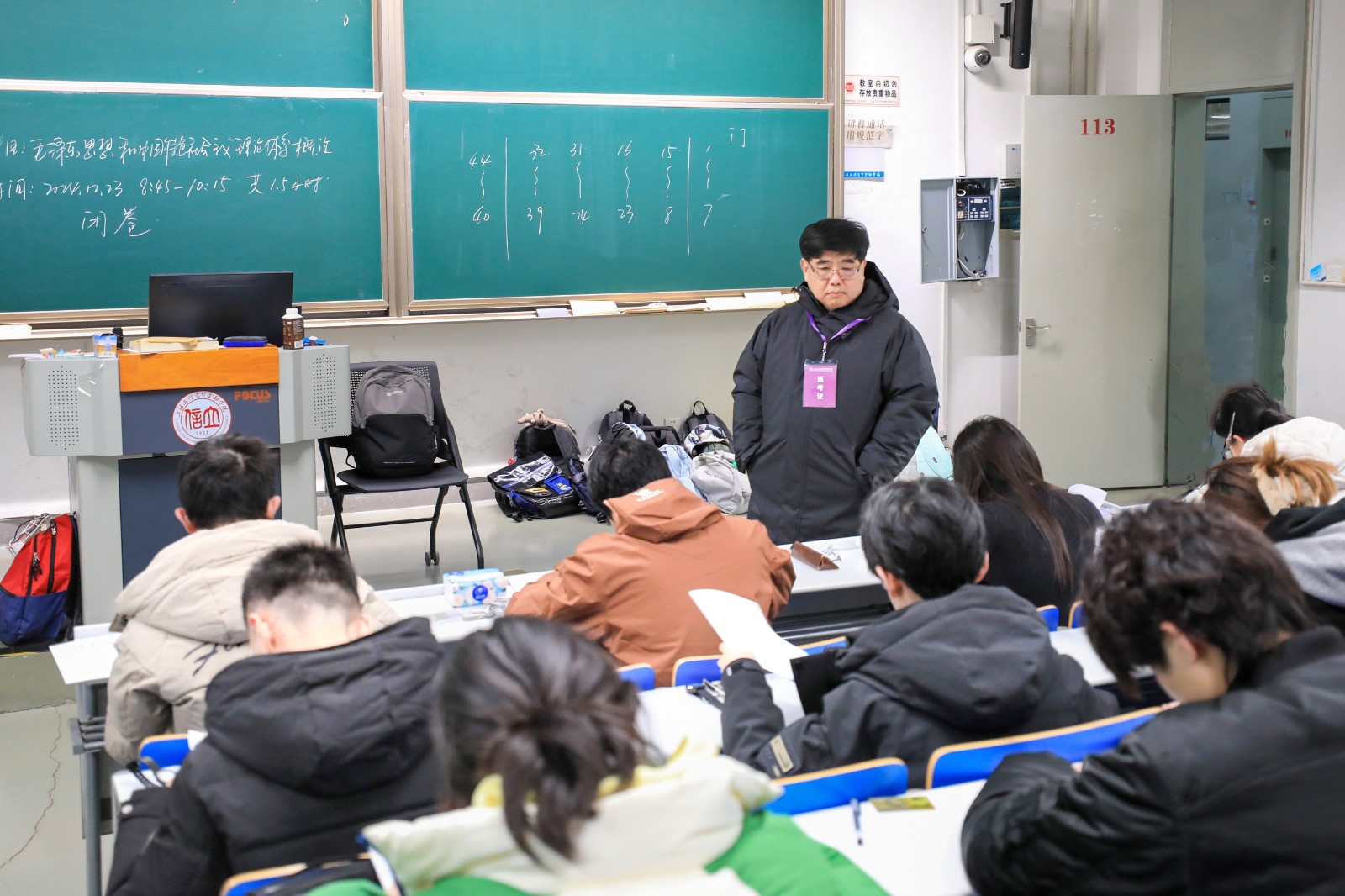本周为2024-2025学年第一学期考试周。党委书记解超,党委副书记、院长杨力,党委副书记、副院长王军华分别前往上川路校区和文翔路校区期末考试现场进行巡查,各二级学院、教务处、学生处、教育质量监控与评估办公室及校级教学督导也在两个校区展开全面巡考工作。