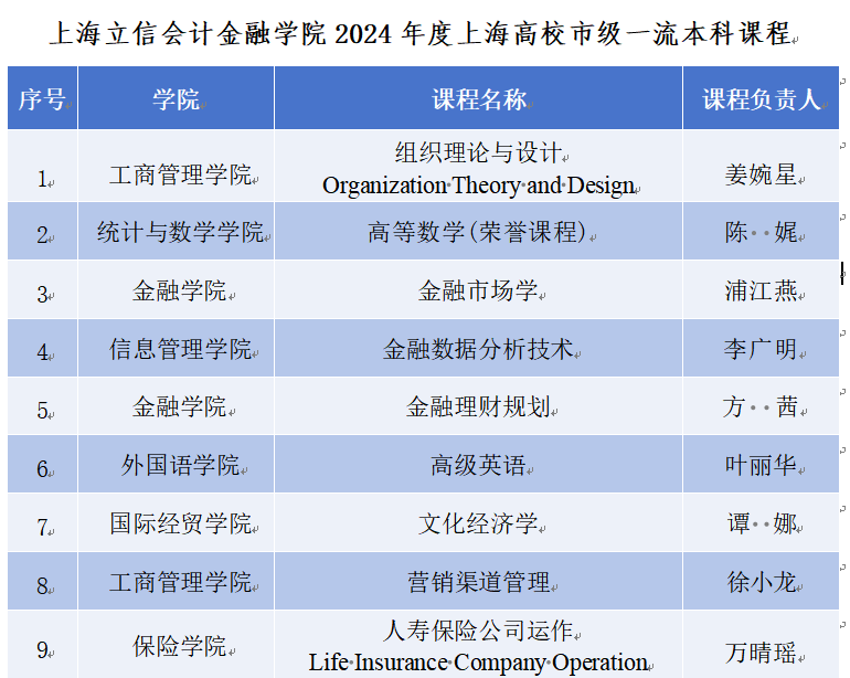 近日,上海市教育委员会发布《关于公布2024年度上海高校市级一流本科课程认定结果的通知》,我校9门课程入选2024年度上海高校市级一流本科课程。