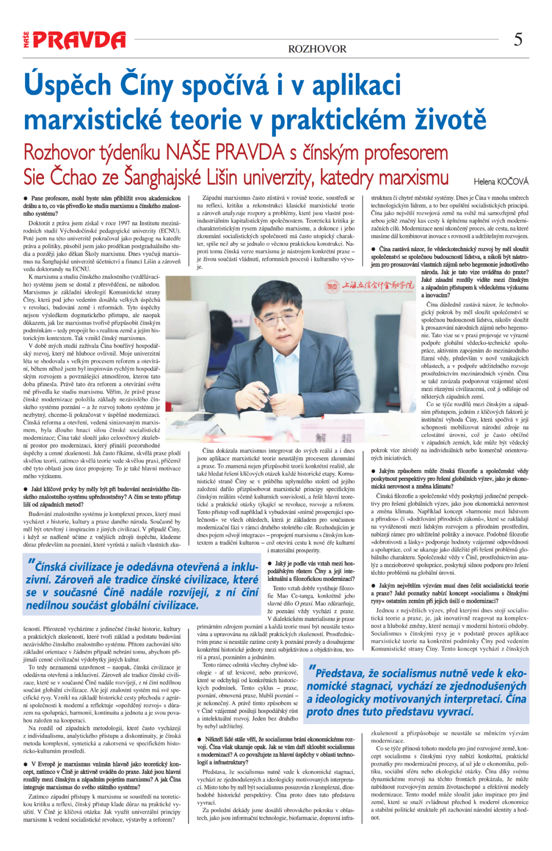 《我们的真相》是捷克共和国具有影响力的综合性新闻平台,是捷克马克思主义研究领域的重要学术传播平台,致力于推动马克思主义在捷克的传播和实践。2024年9月26日,在庆祝中华人民共和国成立75周年之际,我驻捷克大使冯飚曾接受《我们的真相》书面采访,宣介中国发展成就、中国外交政策等,阐明对中捷关系的展望。
