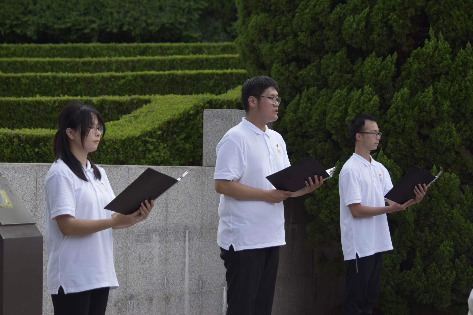 在烈士墓区,来自我校“新进社”等大学生宣讲团的青年学子深情讲述周宝训、吕飞巡、黄秉乾三位英烈校友的英勇事迹,全体人员在英烈校友墓前静默致哀,献花致敬,进行一场跨越时空的精神对话。