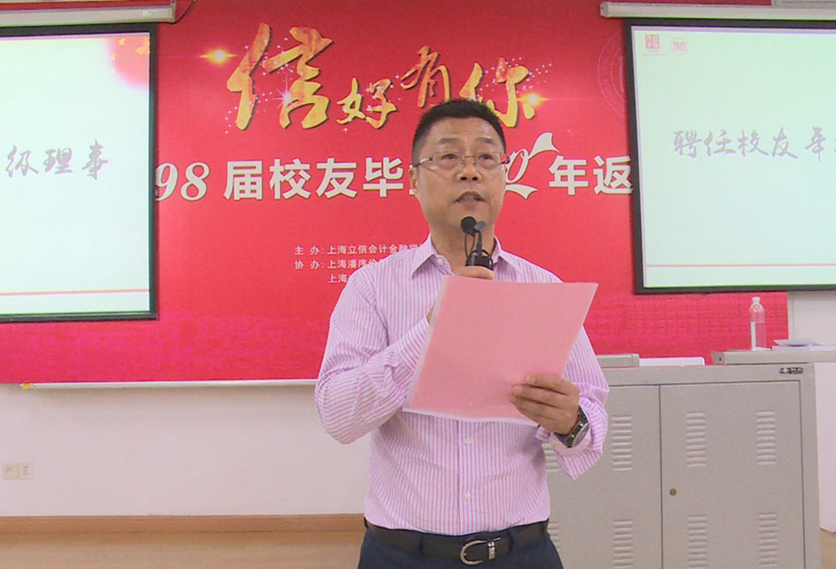 三位校友代表相继发言。第一位发言的校友代表是原注册会计专业学生、安信信托股份有限公司总裁杨晓波,他讲述立信校训感慨颇深,对母校和恩师的培养致以感激之情,希望能为学校的发展贡献自己的力量。原金融专业学生、全国先进工作者、上海市优秀共产党员董之益分享了求学路上的心路历程,感谢老师们教会的不只是专业知识,还有看待世界的方式、诚实做事踏实做人的品德要求。最后一位发言的是原涉外会计专业学生、策源股份有限公司副总裁邓晓斌,他感谢学校对自己的培育,让自己不断进步和成长、拥有自信和动力。