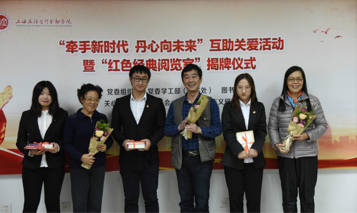 12月5日下午,由校党委组织部、党委学工部、图书馆、关心下一代工作委员会、青年马克思主义研究会主办的“牵手新时代丹心向未来”互助关爱活动暨“红色经典阅览室”揭牌仪式在浦东校区学生活动中心举行。校党委副书记、副校长王军华,副校长朱亚兵,校关心下一代工作委员会常务副主任鲁海波,组织部、学工部、关工委、宣传部、团委、图书馆、马克思主义学院及其他职能部门负责人、青年马克思主义研究会师生代表等40余人参加活动。会议由党委学工部副部长李政主持。