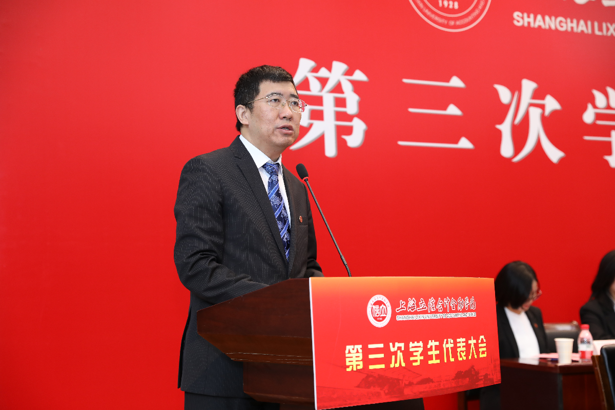 11月1日,我校第三次学生代表大会在浦东校区行政楼召开。校党委副书记、校长杨力,校党委副书记、副校长王军华,校党委委员、党委组织部部长刘永琴,上海市学生联合会驻会执行主席荆鸣昊,校党委学生工作部副部长(主持工作)王铂,校团委副书记(主持工作)魏康婧,兄弟院校代表、各二级学院团委书记和200余名学生代表出席大会。