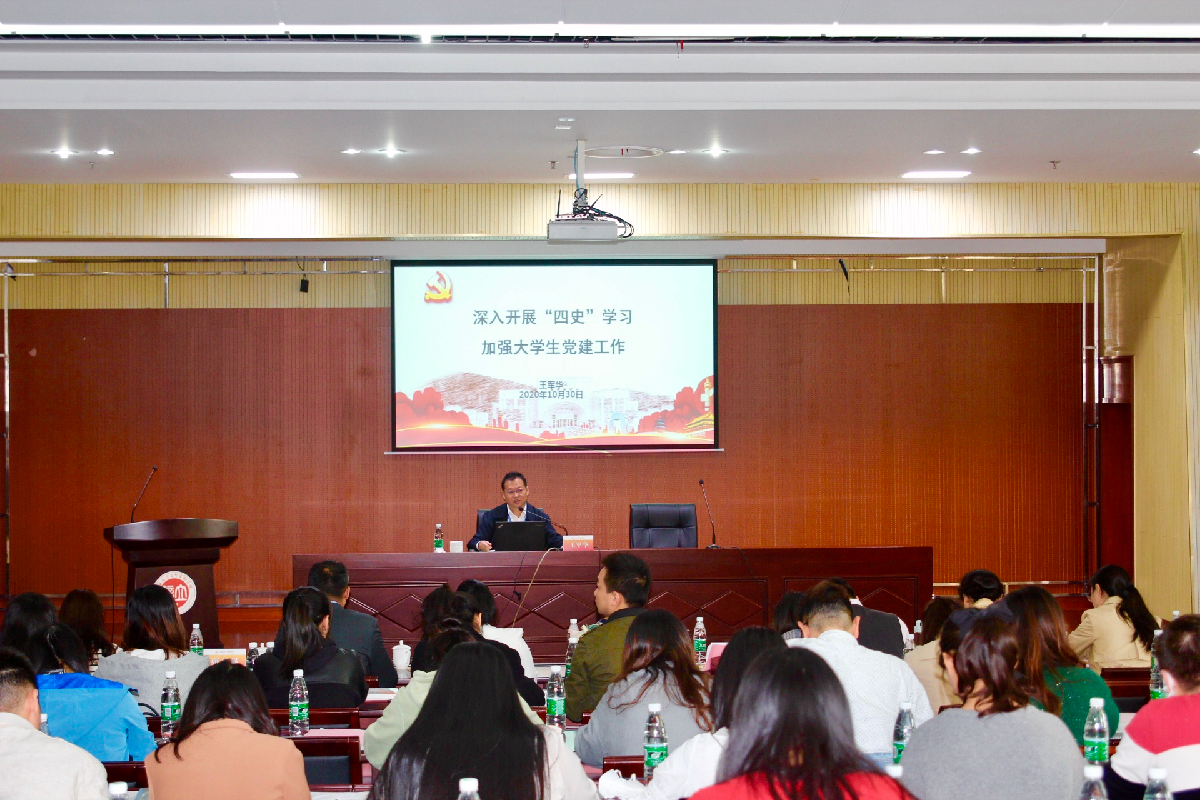 会上,王军华结合习近平总书记关于历史思维的系列讲话以及近期在革命圣地延安学习的感悟,作了题为《深入开展“四史”学习加强大学生党建工作》的专题报告。报告主要聚焦三个维度:一是历史思维。历史是最好的教科书,中国革命历史是最好的“营养剂”。王军华系统梳理与详细解读了习近平总书记关于历史思维的重要论述,强调了“知史爱党、知史爱国”的意义,凸显了奋斗精神的重要性。他希望全体学生工作者继续加强和深化“四史”教育,提高学习深度、增强学习教育实效。二是延安精神。学习和继承革命圣地积淀形成的抗大精神、南泥湾精神、白求恩精神、张思德精神等宝贵精神财富,以此激励我们坚定理想信念,传承中国共产党人优良作风和风范。三是学生党建。王军华着重分析了当前高校学生党建工作存在的三个问题,并提出要把握重点、创新突破、着力基层、强化基础四个要求。他指出应将思想政治工作与党的建设工作相结合作为教育方向,在传承、弘扬共产党的艰苦奋斗精神中不断提高自身党性素质,重点做好大学生党建工作,为国家培养更多德智体美劳全面发展的社会主义建设者和接班人。