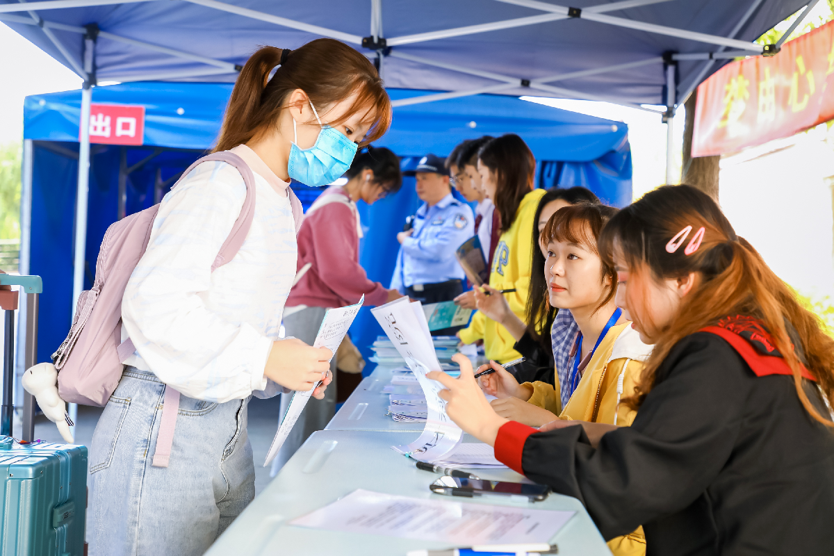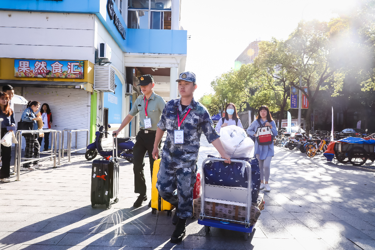 校领导走访慰问了学生志愿者、校门保安、园区服务人员,以及迎新现场相关部门、学生组织设点,向全体为保障迎新工作顺利开展的师生员工表示感谢。