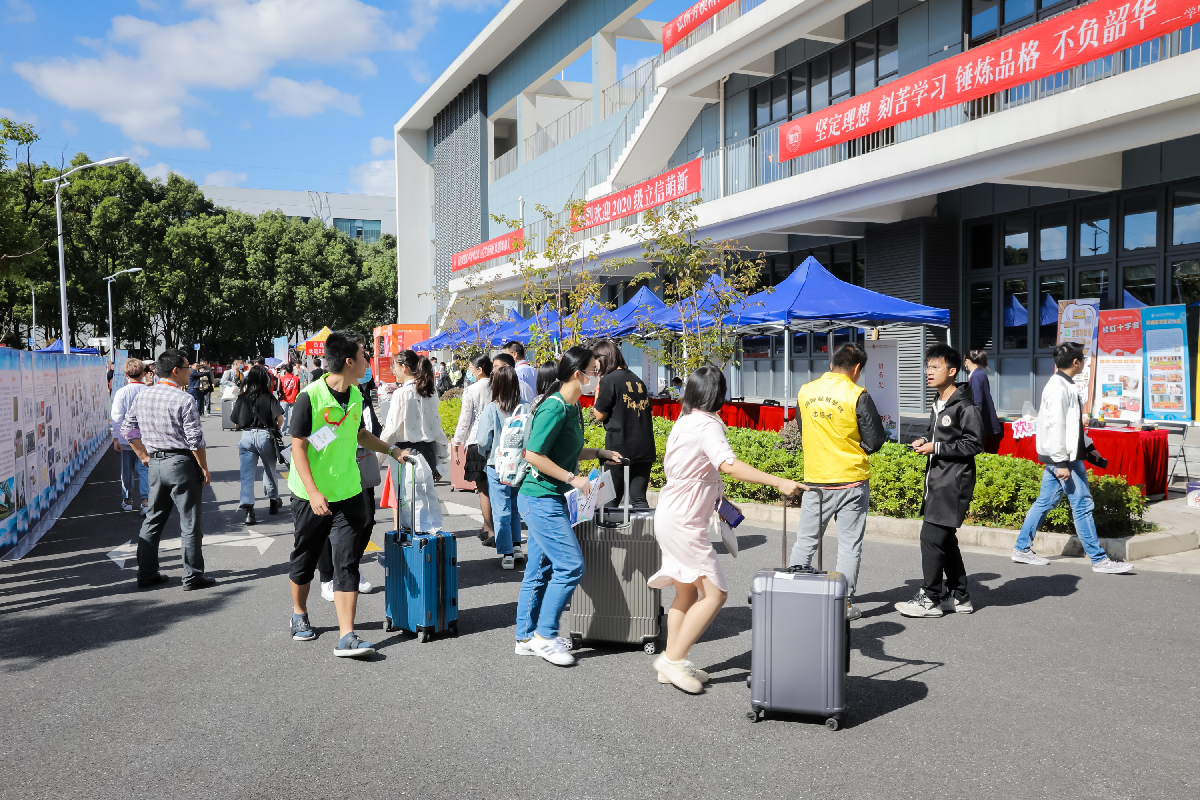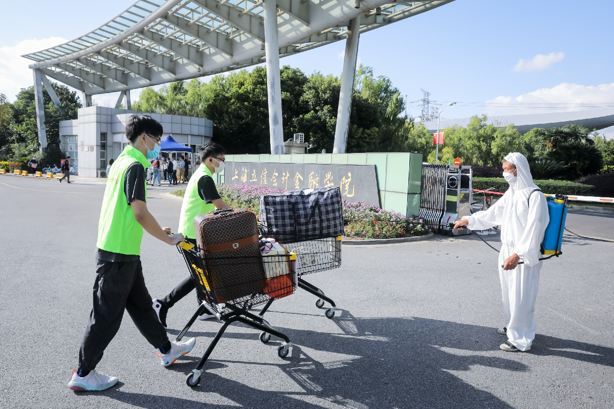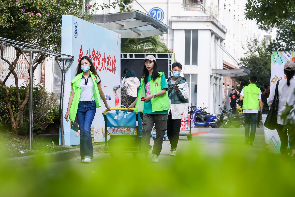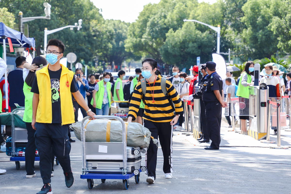 学校坚持将社会主义核心价值观教育融入迎新全过程,一路上,喜迎建国71周年的展板烘托爱国主义氛围;诚信展板与诚信展台全面展示我校诚信教育特色与传承;节约粮食、垃圾分类的宣传栏引导学生崇尚节俭与文明的新风尚。学校结合防疫与劳动教育的要求,依托学生志愿者朋辈相助,实现全部新生自行入校报到入住,家长不陪伴、不参与,通过学校提供的迎新照片网络直播注视着孩子独立成长、迎接新的人生起点。