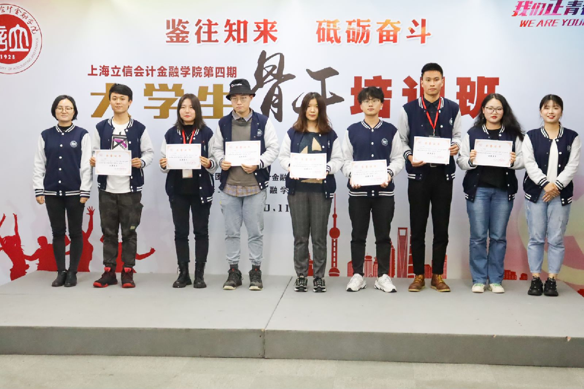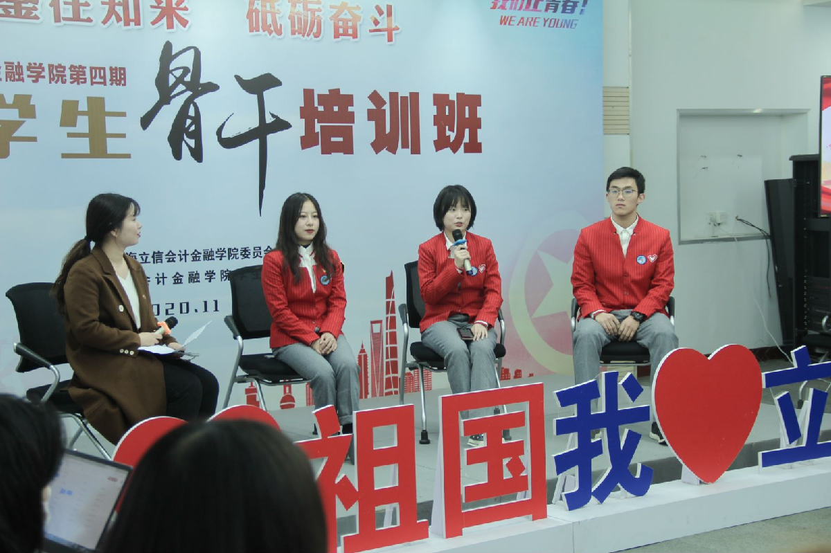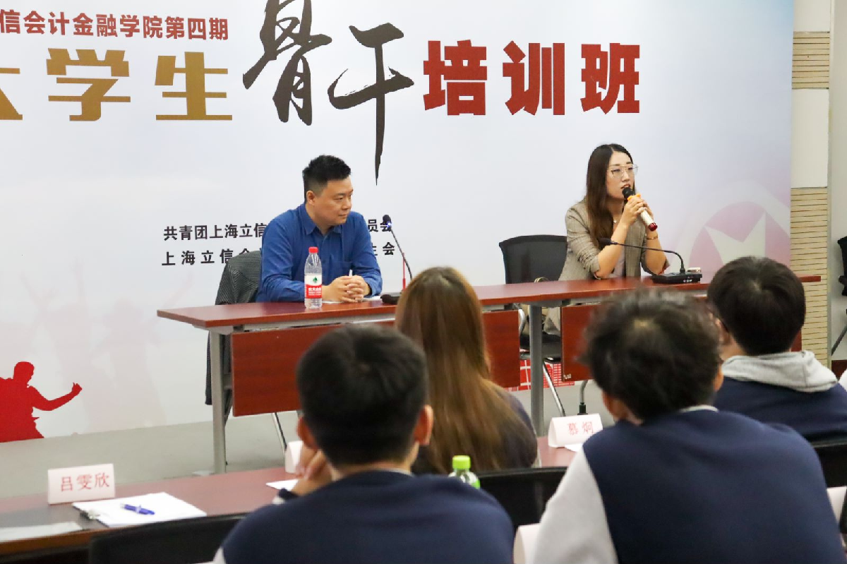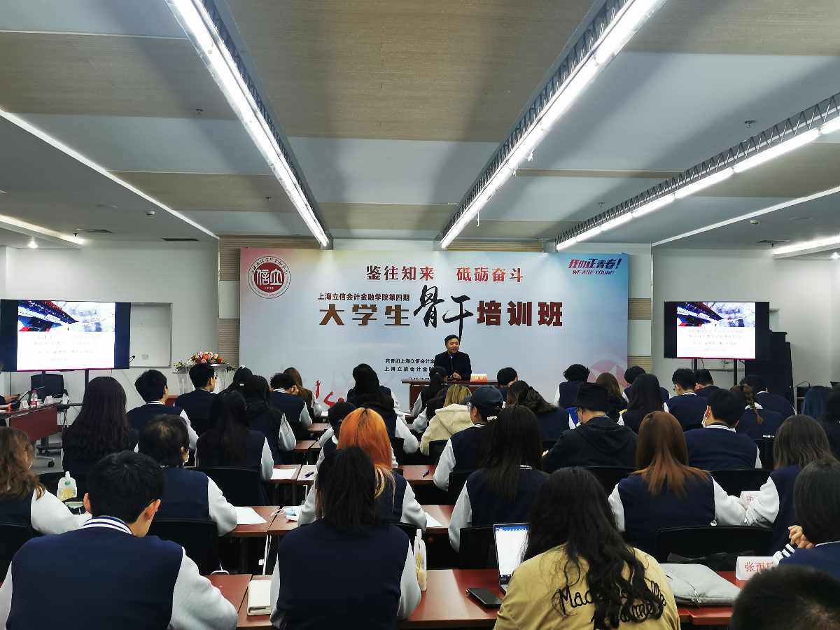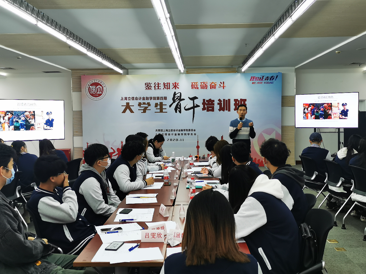 本期培训班以“鉴往知来,砥砺奋斗”为主题,包含理论讲座、实践调研、素质拓展、主题分享等丰富多彩的形式。在三天培训中,家乐福(中国)学习与人才发展经理娄振宇带来“领导力专题与管理经验培养”;上海财经大学马克思主义学院副教授刘洋为学员深入解读了“全面建设社会主义现代化强国新征程中的青年使命担当”;上海立信资产评估有限公司董秘潘登和人事经理刘珏为学员分享了“就业形势分析与行业前瞻”,内容丰厚而充实。此外,进博会志愿者分享、“创作最美校徽”素质拓展活动、精彩纷呈的社会实践调研主题汇报等活动也让学员开拓了眼界,增长了见识。