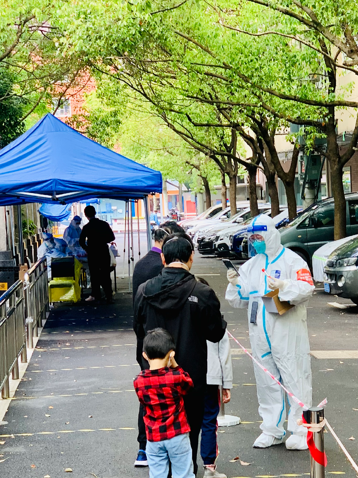 党委宣传部许冰所在小区每天安排六班人员轮岗,他总是选择最晚最忙的一班,平均每天搬运40-50趟物资。他还负责两栋楼的核酸抗原工作,主动陪同医护人员对风险户上门核酸,同时,他还是临时突击队的一员,随时准备出发参与新冠病毒感染者的集中转运工作。