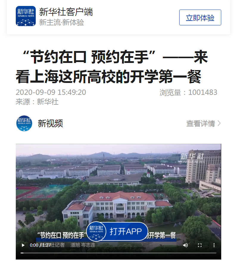相关链接:《“节约在口 预约在手”——来看上海这所高校的开学第一餐》