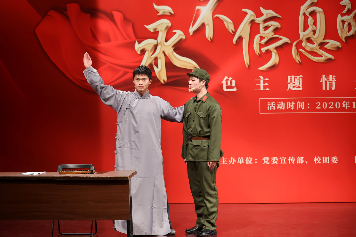此次比赛分为初赛和决赛两个环节,以我校校友、京剧《沙家浜》主人公原型之一李建模烈士的红色故事为原型,参赛主体覆盖全体2020级新生。各二级学院以班级团日活动的形式组织情景剧演出,经初赛选拔,最终推荐13个作品进入决赛。