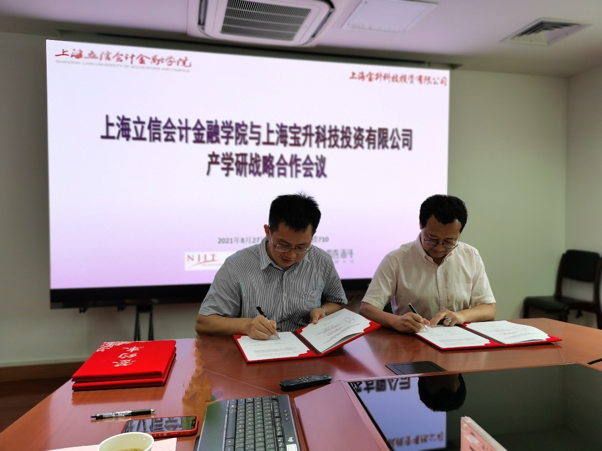 会上,殷林森和朱江签署了《上海立信会计金融学院与上海宝升科技投资有限公司产学研战略合作框架协议》。